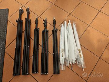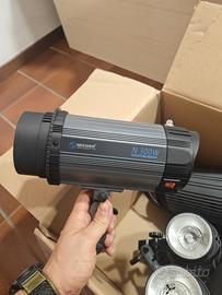 vendo kit per studio fotografico, adatto anche a chi sta iniziando a fotografare. sono 5 flash da studio con relativi ombrellini diffusori bianchi, un porta fondale con 3 teli diversi (bianco, nero, verde), e 5 stativi di varie altezze. il tutto usato due volte e basta. vendo infatti per inutilizzo. regalo i vari trigger per comandare i flash a distanza. dato la delicatezza dei flash, preferisco non spedire. no perditempo, grazie.