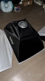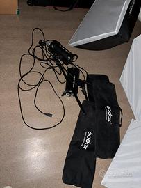 Kit studio Godox SK400 2 flash sk400 con trasmettitore, 2 stativi, 2 soft box rettangolari e 1 soft box esagonale