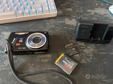 fotocamera Kodak EasyShare m575 perfettamente funzionante con batteria, caricatore, e memory card da 4 gb. La fotocamera ha delle righe nere nei angoli ma non compromettono il funzionamento nelle foto non sono visibili, guardare ultima foto