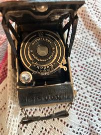 kodak junior 620 vintage.1:6 f=10,5.Come si può vedere nella foto ha una delle sbarrette per tenerla aperta senza vite.non so se funzionante