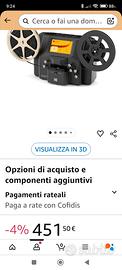 vendo scanner per bobine in 8mm e super 8. il proiettore permette di scansionare direttamente i vostri vecchi filmini su bobina in formato USB su chiavetta. il risultato è ottimo. sono possibili le varie regolazioni per aumentare la definizione. lo scanner è praticamente nuovo. l'ho usato per riversare le bobine di famiglia. Ancora in garanzia e acquistato su Amazon a 451 euro.