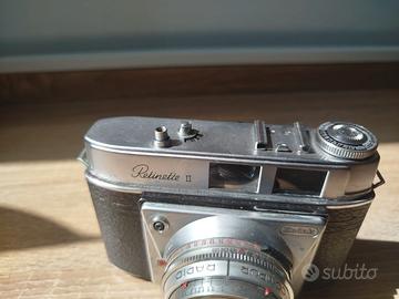 Kodak Retinette II (Type 026) – Fotocamera analogica 35mm vintage – Made in Germany In vendita fotocamera analogica **Kodak Retinette II (Type 026)**, prodotta in Germania nei primi anni ’60. Modello storico della serie Retinette, apprezzato per la qualità costruttiva interamente in metallo e per l’eccellente resa ottica. La fotocamera utilizza pellicola **35mm (135)** ed è dotata di otturatore **Prontor-SVS** con tempi da **1 secondo a 1/300 + posa B**, sincronizzazione flash X e messa a fuoco manuale a scala di distanze. È equipaggiata con l’obiettivo **Schneider-Kreuznach Retina-Xenar 50mm f/2.8**, noto per l’alta nitidezza, il buon contrasto e la resa molto naturale, particolarmente apprezzata in ritratti e paesaggi. Corpo compatto, solido e interamente in metallo, costruito in Germania, progettato per un utilizzo affidabile nel tempo. Ideale per collezionisti, appassionati di fotografia analogica e per chi desidera scattare con una fotocamera meccanica di qualità storica. **Caratteristiche principali:** * Pellicola: 35mm (135) * Otturatore: Prontor-SVS * Tempi: 1s – 1/300 + B * Sincronizzazione flash: X * Obiettivo: Schneider-Kreuznach Retina-Xenar 50mm f/2.8 * Messa a fuoco: manuale * Produzione: Germania