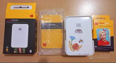Vendo nuova in quanto mai utilizzata ed ancora nella sua confezione originale, stampante fotografica mobile instantanea KODAK STEP PRINTER SLIM + 1 confezione di 20 fogli di carta Kodak Zink, brandizzata "Mulino Bianco". Stampa in modalità wireless foto & ZINK - Carta fotografica, Formato 2"x3", Confezione da 20 fogli. Come foto. NO SCAMBI