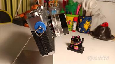 Bellissima Konica Auto S 1.6 Questa fantastica fotocamera a telemetro ad ottica fissa meno conosciuta rispetto alle Olympus 35 SP o Canonet QL 17 GIII, perché vanno più di moda, non ha niente da invidiare a queste ultime due anzi per molti aspetti è nettamente superiore. Mirino grande, luminoso e brillante con cornici mobili per la correzione della parallasse. Telemetro chiaro e preciso. Visione dei diaframmi nel mirino e sulla calotta. Possibilità, sempre con l'esposimetro visibile di lavorare in automatico a priorità di tempi o completamente in manuale Ceck battery presente. Meccanica robustissima tutta in metallo, alluminio ottone e acciaio. Ottica superlativa ed ultra luminosa Hexanon 45 mm f 1.6 La fotocamera in oggetto è stata ricondizionata, restaurata totalmente in modo superficiale e profondo. È adesso un magnifico strumento dall’aspetto eccellente pronto ad essere usato da mani esperte e non . Ottimo oggetto adatto per la lomografia, la street photography e la fotografia riflessiva. Eccellente con il bianco e nero. Fresca e pronta per gli esperti amanti della fotografia analogica.