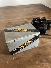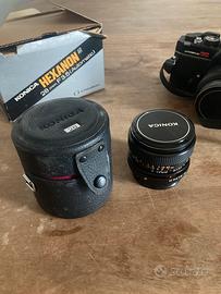 Vendo macchina fotografica analogica Konica con 50 mm 1.4 e 28 mm 3.5 il grandangolo è dotato di scatola, custodia obbiettivo cinturino per la custodia e paraluce ancora nella sua plastica originale