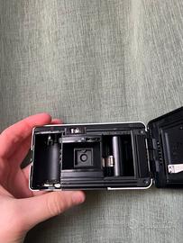 È una fotocamera analogica compatta a pellicola 35mm con obiettivo fisso Konica 28mm f/6.7 e messa a fuoco fissa