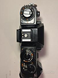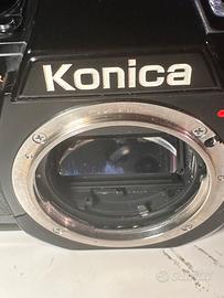 Reflex Konica FT1 recentemente oggetto di riparazione, funziona correttamete, i led si illuminano, l’esposimetro funziona a dovere, la raffica è corretta. Testata su pellicola. La fotocamera oorta inciso il nome del precedente proprietario come da foto, vano batterie in buono stato, interno pulito. Compreso cavo di scatto remoto konica originale. Piccolo segno sullo specchio, come da foto, che non ha effetto sullutilizzo.