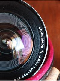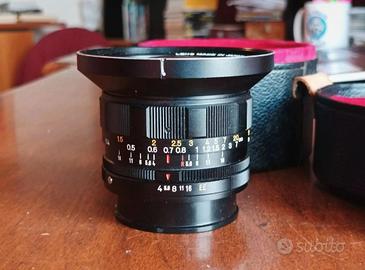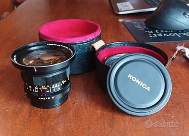 konica hexanon AR 21mm f4 con custodia e paraluce