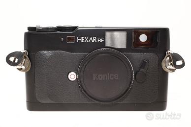 Konica Hexar RF kit professional con imballo originale. Il kit comprende il flash e l'obiettivo hexanon M 50/2 . In omaggio borsa originale mai usata. Condizioni come nuove utilizzata per qualche prova ed a uso collezionistico .