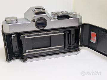 Manca la leva dell'autoscatto che però è funzionante e attivabile dal pomellino anteriore. Esposimetro funzionante