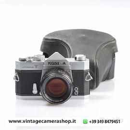 KONICA AUTOREFLEX T + HEXANON AR 57mm F.1,4 è una fotocamera reflex a pellicola 35mm, prodotta dalla Konica a partire dalla fine degli anni '60. Questo modello ha segnato un'epoca per la sua innovazione tecnica e il suo design robusto e affidabile. Abbinata all'obiettivo Hexanon AR 57mm F1.4, questa combinazione offre prestazioni eccezionali in termini di qualità dell'immagine e versatilità.