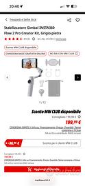 🎬 Insta360 Flow 2 Pro Creator Kit – Grigio Pietra | MAI USATO Vendo Insta360 Flow 2 Pro Creator Kit in condizioni perfette. Mai estratto dalla confezione, come nuovo. Acquistato da MediaWorld, prezzo di listino €199,99. Cosa include: ✅ Insta360 Flow 2 Pro ✅ Spotlight ufficiale Insta360 ✅ Aggancio magnetico per smartphone ✅ Cavo di ricarica USB-C ✅ Custodia protettiva originale Perché è il top: • Tracciamento AI Deep Track 4.0 • Pan 360° infinito • Apple DockKit — tracking nativo su iPhone Camera e +200 app • Free Tilt Mode • Treppiede + selfie stick integrati • Batteria 10 ore • Active Zoom Tracking fino a 15x 📦 Confezione originale 📍 veremezzo (milano)— Spedizione disponibile / Ritiro a mano 📩 Scrivimi in privato