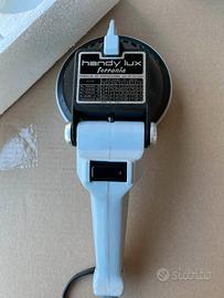 Lampada faro HANDY LUX FERRANIA per riprese fotografiche o cinematografiche per interno. Orientabile con staffe per attacco alle cineprese, cavo elettrico lungo circa 3 m. funzionante ed in perfette condizioni, nella sua scatola originale e con libretto di istruzioni.