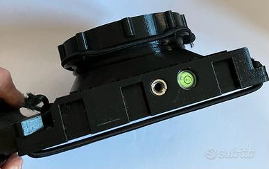 Precisa, comoda, leggera, con livelle a bolla per ripresa in verticale e orizzontale e vite per treppiede su tre lati.