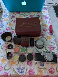 macchina Leica DRP vintage completa di molti accessori. la macchina, in ottime condizioni, viene venduta insieme a due obbiettivi: SUMMICRON F=5 1:2 e SUMMARON f=3,5 cm 1:35