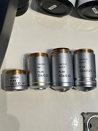 In dotazione 4 obiettivi 4/10/40/100X piú set completo per contrasto di fase 10/40X.