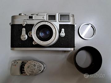 Macchina fotografica Leica M3 obb Elmar 50mm f 2,8 Paraluce originale Filtro UV originale tutto perfetto e funzionante. in regalo Esposimetro Leica Meter MC originale possibile spedizione