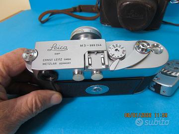 Vendo una bella Leica M3 con Elmar 50F.2,8+borsa e in omaggio leicameter ,la macchina si presenta in buone condizioni come pure l'ottica,per correttezza evidenzio qualche piccolo segnetto dovuti al tempo e all'uso, la macchina funziona correttamente,per ulteriori informazioni contattatemi.Per cortesia alla larga perditempo e propèoste assurde,grazie. PS:Preferirei non spedire.