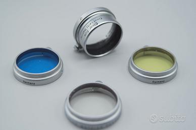 Leica Fison paraluce per Elmar 50mm f 3,5 a vite cromo , nel kit sono compresi tre filtri cromo di cui un UV + BLU + GIALLO chiaro. Vendo a 100 euro. Leica FIKUS paraluce e36 a clip per elmar 50+ elmar 90 + 135mm. vendo a 80. Non spedisco.