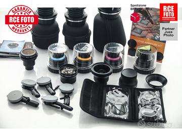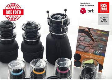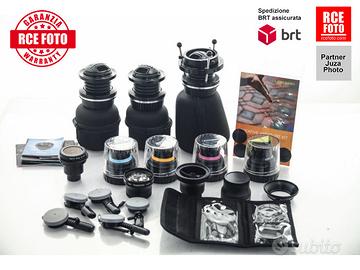 1 lensbaby control freak-3 Doble glass lens-2 muse-1soft focus-1 plastic glass-1 single glass-1 1.6x telephoto lens-1 0.6x wide angle lens-1 0.42super wide lens-1 optic swap system 12 mm-1 pinhole zone plate-3 portadiaframmi con disframmi inclusi-1 sacca con 3 filtri-1 confezione nuova di diaframmi da inventare