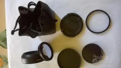 Vendo lente macro grandangolo nuovo causa acquisto errato usato per una volta per prova diametro obiettivo 52-56 compatibile con tutte le marche Nikon canon ect...in più filtro uv e tappo vendo perché io ho un obiettivo del d.67 e la riduzione è troppo , pagato 100.00? ritiro a mano in zona bergamo [ponte san pietro] in alternativa spedizione con spese a vostro carico