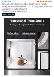 Light box 25x25cm, scatola luminosa per fotografare oggetti di piccole dimensioni Usata pochissimo ed ancora in ottimo stato.