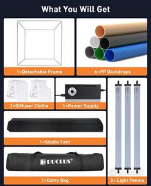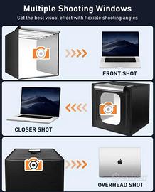 Vendo light box professionale top di gamma, vari sfondi inclusi, luce dimmerabile e vari filtri inclusi. Vari punti focali per scatti, ganci per foto abbigliamento. Non esiste di meglio !