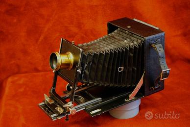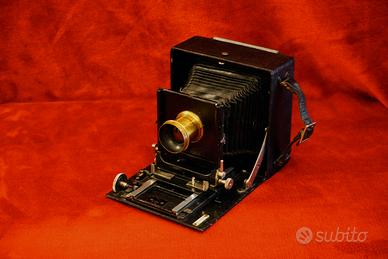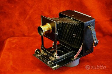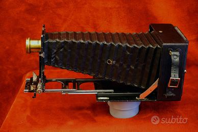 Vendo Linhof 9x12 (1940). La macchina è perfetta . Soffietto pelle pesante integro tutti movimenti ok. Comprata 25 anni fa per un corso collodio umido e per questo corredata con 2 obiettivi di epoca un Ross London ( 1875) e un altro più antico penso per dagherrotipia . La focale dei due è di 130mm uno e 150mm altro. A corredo 10 chassis 9x12 e un porta rullo Rada 6x9, più borsa cuoio per trasporto. Vendo a 350 euro. Non spedisco.