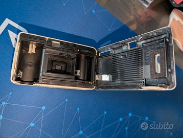 Macchina fotografica per pellicola con obbiettivo fisso fisheye (170 gradi) e flash. Macchina basica con cui ci si puo' divertire e sbizzarrire. Usata, con danni solo cosmetici, funziona.