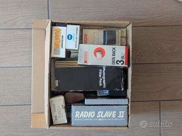 selezione di accessori fotografici e audio, in gran parte fondo di magazzino (Deadstock) e materiale vintage per amatori e collezionisti. Come visibile dalle foto, non si tratta della solita "scatola vuota": il lotto include articoli di marchi prestigiosi e componenti difficili da reperire singolarmente, molti dei quali ancora nelle loro confezioni originali dell'epoca.