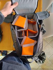 Zaino fotografico come nuovo. Accesso fotocamera da schienale. Molteplici possibilità di ripartizione degli spazi. Guscio impermeabile incorporato. Tasche laterali. Cinghie frontali (molto comode per trasporto cavalletto). Come nuovo.
