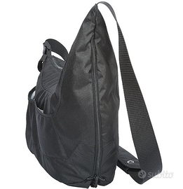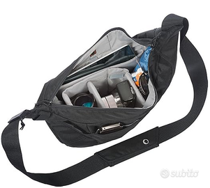 Caratterizzato da una forma originale, la monospalla Passport Sling III è sfruttabile per contenere oggetti di ampie dimensioni, come un teleobiettivo o un treppiedi di medie dimensioni. La speciale struttura asimmetrica che si ottiene aprendo la cerniera laterale, aumenta la capacità di carico di circa il 30%. Monospalla discreto, protettivo e versatile. Un inserto estraibile per la tua fotocamera, resistente agli urti che si regola per adattarsi ad una reflex compatta o CSC tasca aggiuntiva per tablet con sistema CradleFit che con la sua costruzione in schiuma galleggiante sospende e protegge il dispositivo all'interno vano espandibile che aumenta il volume interno del 30%, con un rapido gesto tasca interna in rete con zip perproteggere piccoli oggetti all'interno tracolla regolabile e removibile con fibbia per una vestibilità extra tasche esterne abbastanza spaziose per una bottiglia d'acqua o altri piccoli oggetti per poterli afferrare rapidamente. condizioni : pari al nuovo, usato 3 volte soltanto