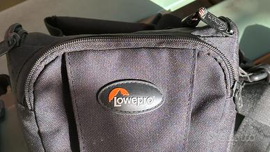 Custodia per fotocamere reflex digitali e obiettivo Lowepro TLZ-1 nera a tracolla, portabile anche alla cintura attraverso il passante posteriore. Contiene una macchina fotografica full frame / reflex / dlsr di grandi dimensioni ed uno zoom / obiettivo normale (non teleobiettivo). Ritiro a mano su Milano o spedizione in tutta Italia.