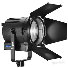 Lente da 15 cm che può essere messa a fuoco da 15 a 50 gradi da spot a flood - Temperatura del colore 5600K - CRI: 97 - Barriere a 4 vie incluse per illuminazione selettiva - DMX integrato - Adattatore CA multitensione - AC o funzionamento a batteria opzionale - Equivalente al tungsteno da 1000 W - Dimmerazione da 0 a 100%