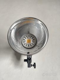 Ha attacco bowens e possibilità di montare i classici ombrellini che si usano in fotografia.