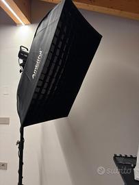 Prezzo: 400 € trattabili per il kit completo, oppure 200 € a luce e 60 € per la coppia di softbox con stativi.