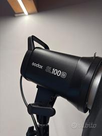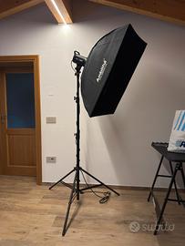Il kit include due luci Godox SL100Bi, due softbox con attacco Bowens e due stativi regolabili in altezza. Tutto perfettamente funzionante e pronto all’uso.
