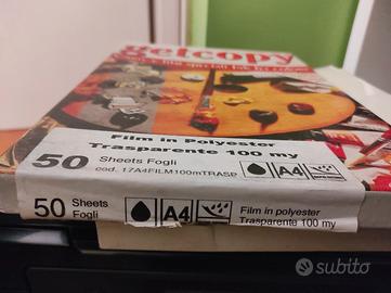 Scatola fogli lucidi poliestere trasparente di alta qualità. 50 fogli( forse anche più…)formato A4