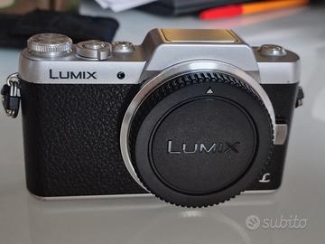Fotocamera Panasonic Lumix GF7, perfettamente funzionante, solo corpo, con qualche leggero graffietto, sicuramente non è come nuova ma su una fotocamera come questa non risulta sgradevole qualche tocco vissuto, l'importante è il sensore e quello è perfetto. Ideale per street photography, viaggi, dimensioni da compattina.