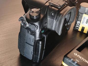 comprende di 2 batteria PATONA (di alta qualità) piu caricabatteria doppio (la batteria originale purtroppo non è piu funzionante probabilmente per averla tenuta troppo ferma) la sua tracolla originale e una borsa per portarla impermeabile!
