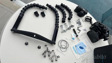 Vendesi per conto terzi macchina fotografica Lumix LX100 con scafandro Nauticam dedicato e cloche abbinabile con bracci snodabili per i fari.