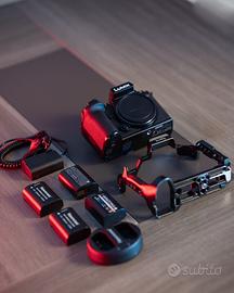 Vendo Kit composto da: • Panasonic Lumix S5 Il come nuova, ancora in garanzia Fowa fino al 12/06/2027, rimessa a nuovo con lavori fatti su nuovo sensore, pulsante di scatto, PCB, Taratura, smontaggio e controllo completo. Completa di scatola originale, tappo copri sensore e tracolla. • 1 batteria originale, 2 aftermarket con caricatore, 1 patona caricabile con USB-C più una dummy battery Alvins Cable con attacco D-tap per V-lock. • Cage Smallrig con normali segni di usura. • Adattatore Sigma MC-21 da EF a L mount Tutto a € 1400
