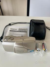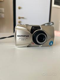 Vendo fotocamera analogica Olympus Mju II Zoom 115 Multi AF, in ottime condizioni, completa di laccetto e custodia originale Olympus. Modello molto ricercato della serie Mju, difficile da trovare a questo prezzo in queste condizioni. Incluse 2 batterie quindi già pronta all'uso. Ideale per fotografia analogica e collezionismo. CARATTERISTICHE: • Tipo: compatta analogica 35mm • Obiettivo: zoom 38–115mm Olympus • Autofocus: Multi AF • Modalità di scatto: completamente automatica • Flash integrato (automatico + modalità varie) • Autoscatto • Avanzamento e riavvolgimento automatico pellicola • Display LCD superiore • Sensibilità ISO automatica (DX coding) • Alimentazione: batterie • Compatta, leggera e affidabile