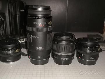 Macchina Canon EOS 350(digitale) + macchina EOS 750 (rullino) + obiettivo AF 50mm posso sky 52mm + grandangolo 28mm posso sky 52mm +borsa originale da trasporto.