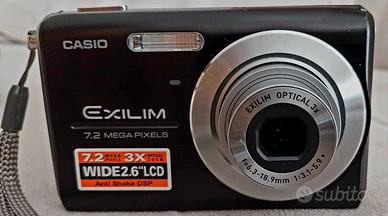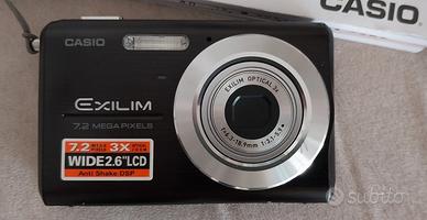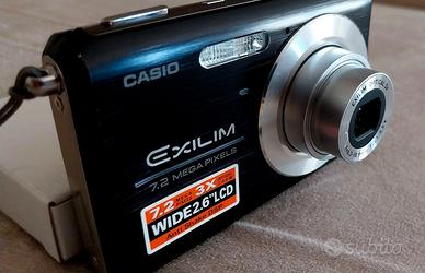 Bella macchina fotografica digitale CASIO EXILIM 7,2 MEGA PIXELS 1/2,5 CCD NERO. Zoom ottico 3X Wide 2.6 Lcd f=6.3. 18,9 mm Macchina perfettamente funzionante con doppia batteria. presenta sul lato destro frontale un piccola impercettibile rientranza.