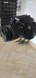 Canon eos reflex 2000 D obbiettivo 75300 zaino antipioggia sim 128 gb extreme pro.