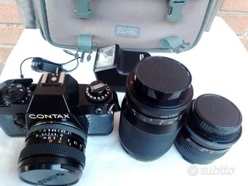 Macchina ln ottimo stato ed e' compreso: flash elettronico- borsa- tre obiettivi CARL ZAISS :1.7/50. 2.8/28 . 2.8/135.