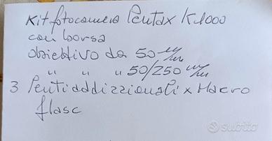 Kit fotocamera Pentax con borsa , obiettivi , lenti addizionali e flash