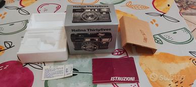 Vendesi Macchina Fotografia HALINA Mod. "35 - Thirtyfives". La macchina fotografica esternamente è in discreto stato ma presenta qualche lieve difetto. I pulsanti, la leva riavvolgi pellicola e lo sportellino del rullino sembrano funzionare regolarmente. Sono presenti imballo completo, scatola e manuale di istruzioni originali, il tutto integro ed in buono stato.
