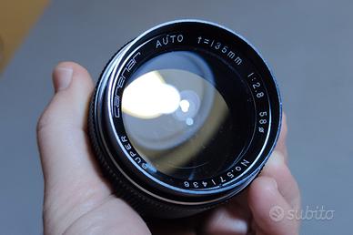 È corredata da custodia con tracolla. Libretto istruzioni (modello simile ma praticamente uguale), obiettivo 50mm/1, 8 più grandangolo 29mm/2, 8 e tele 135mm/2, 8 Carenar. Gli obiettivi hanno lenti nitide e prive di macchie, il 135 presenta un corpo un po vissuto, ma lenti e ghiere sono perfette. Corpo macchina con qualche segno del tempo, visibile anche nel mirino, che tuttavia non determinano la qualità degli scatti. Vendo a 140 € più spedizione.
